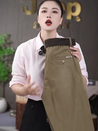 姐妹们,这套真的太好看了,裤子是这种垂感很好,很柔软舒服的西装面料,而且它腰部这个地方做的是这种捏褶设计,就显得腰特别细,搭配这种小西装外套就很高级,很显气质。